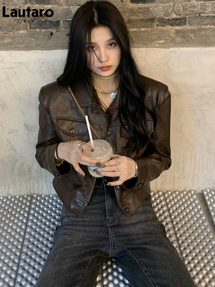 Sophisticated Style: Lautaro Spring Autumn Short Faux Leather Jacket